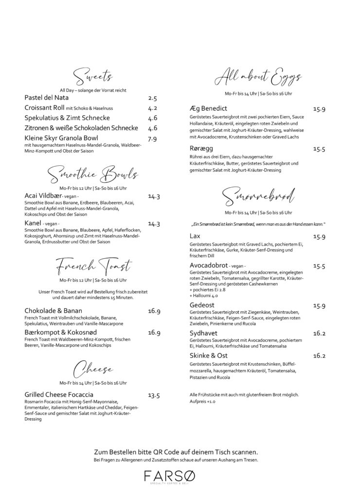 Alle Frühstücksgerichte bereiten wir frisch und auf Bestellung zu. Es kann daher manchmal etwas länger dauern – bitte habt ein wenig Geduld. Wer sehr hungrig ist, gönnt sich am besten vorweg eine Zimt-Spekulatius-Schnecke oder einen Cookie, um eventuelle Wartezeit zu überbrücken.